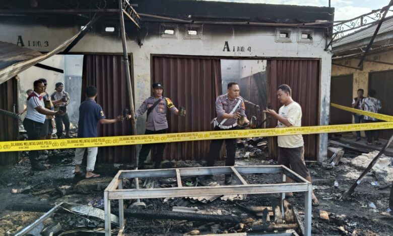 Polsek Tulang Bawang Tengah Beserta Tim Inafis Polres Tubaba Gerak Cepat Datangi TKP Kebakaran Toko di Pasar Panaragan Jaya