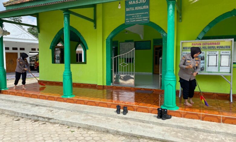 Bakti Sosial Religi, Polres Tulang Bawang Barat Bersihkan Tempat Ibadah di Panaragan Jaya