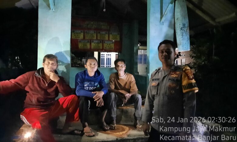 Hariansinergi.com, Tulang Bawang– Dalam rangka menjaga stabilitas keamanan dan ketertiban masyarakat (kamtibmas), jajaran Bhabinkamtibmas Polsek Banjar Agung Polres Tulang Bawang melaksanakan kegiatan Sambang dan Cek Pos Satkamling secara serentak di wilayah kampung binaan masing-masing, Sabtu dini hari (24/01/2026).