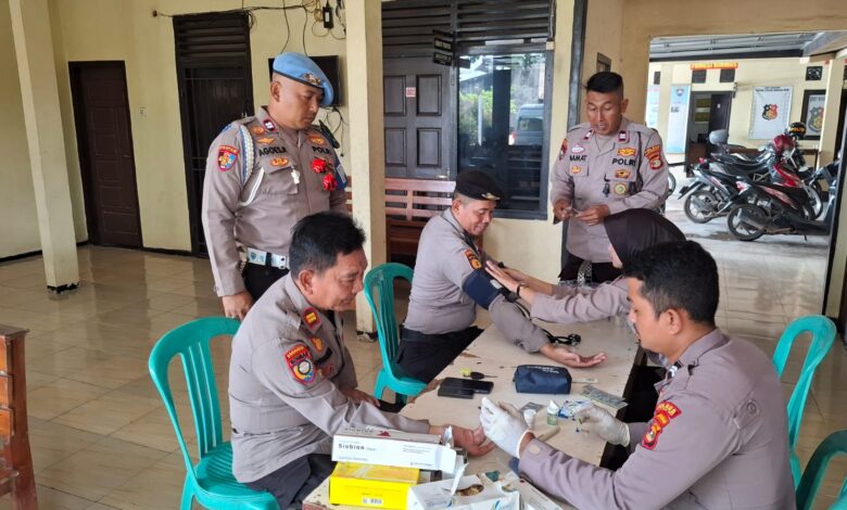 Kapolres Tulang Bawang Barat, AKBP Sendi Antoni, S.I.K., M.I.K. Melalui Kasi Dokkes Aiptu Badar Johan, Amkg, Pimpin langsung Kegiatan bersama sejumlah anggota Sie Dokkes lainnya, dengan tujuan untuk Memastikan kesehatan dan kebugaran personel Polsek tetap prima agar pelayanan kepada masyarakat maksimal serta mendeteksi dini penyakit, pemeriksaan kesehatan rutin bagi anggota yang bertugas di Polsek jajaran