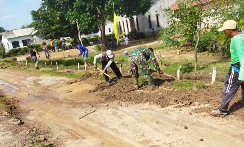 Hariansinergi.com, Menggala, Tulang Bawang- Babinsa Koramil 426-02 Menggala, Kodim 0426 Tulang Bawang, Sertu Saleh, bersama masyarakat melaksanakan kegiatan gotong royong pembersihan selokan dan parit di sepanjang ruas jalan Kampung Way Dente, Kecamatan Dente Teladas, Kabupaten Tulang Bawang, pada Jumat (27/03/2026).