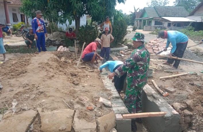 Hariansinergi.com, Meraksa Aji, Tulang Bawang– Babinsa Koramil 426-05/PA, Kodim 0426 Tulang Bawang, Sertu Sukardi, bersama masyarakat melaksanakan kegiatan Karya Bhakti dalam pembuatan talud di Kampung Marga Jaya, Kecamatan Meraksa Aji, Kabupaten Tulang Bawang, pada Jumat (27/03/2026).