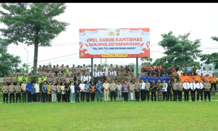 Hariansinergi.com, Tulang Bawang Barat- Polres Tulang Bawang Barat, Polda Lampung menggelar kegiatan Apel Sabuk Kamtibmas yang dirangkaikan dengan Simulasi Sistem Pengamanan Markas Komando (Sispam Mako), bertempat di Mako Polres Tubaba, Jumat (17/04/2026)