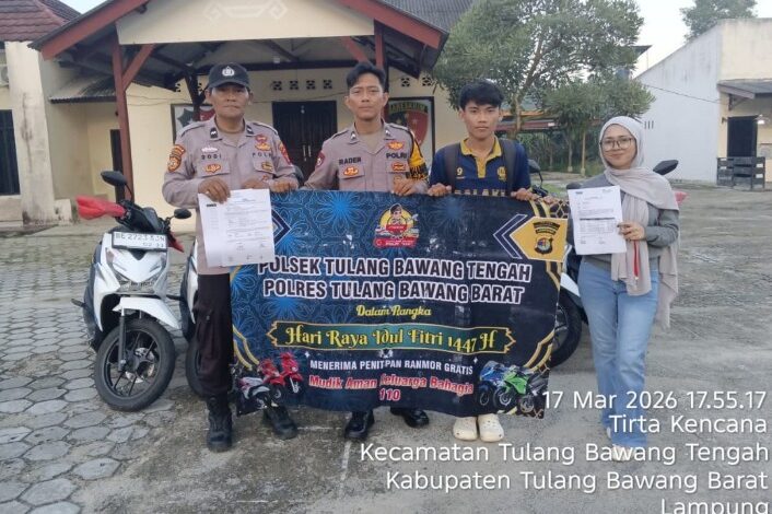 Hariansinergi.com, Tulang Bawang Barat- Polsek Tulang Bawang Tengah Polres Tubaba Polda Lampung, menerima penitipan 17 unit sepeda motor dari masyarakat yang akan melaksanakan mudik lebaran. Penitipan kendaraan ini dilakukan pada hari Selasa Tanggal 17 Maret 2026, sore. Kapolres Tubaba AKBP Sendi Antoni S.I.K., M.I.K, melalui Kapolsek Tulang Bawang Tengah Kompol M. Taufiq, S.H., M.H, menyampaikan bahwa program penitipan kendaraan ini…